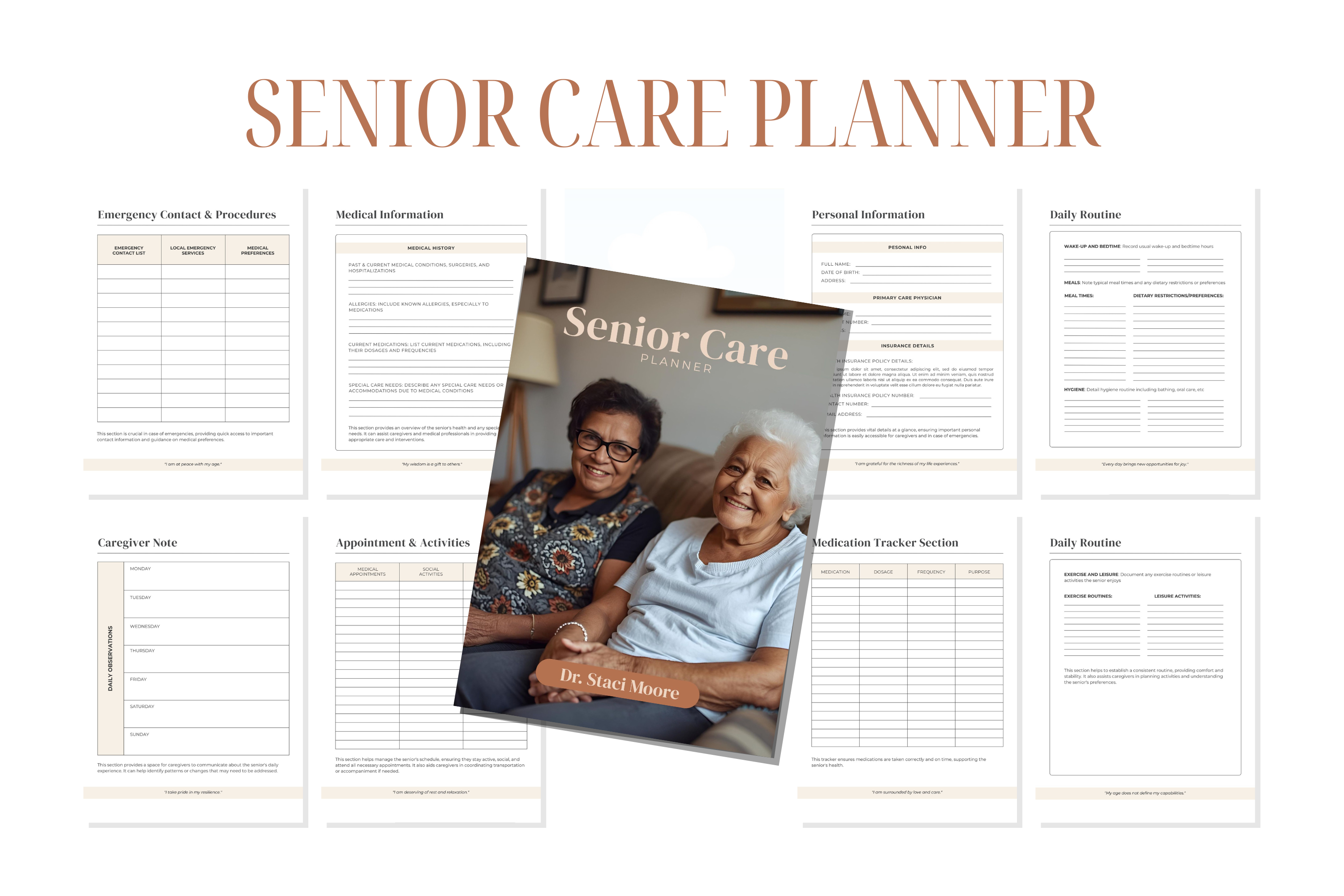 Our Senior Care Planner is designed to help you stay organized with at-a-glance pages for medications, appointments, and personalized care notes—designed by someone who understands the real-life challenges of caregiving.